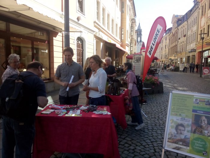Wie jedes Jahr beteiligte sich Caren Lay auch in diesem Jahr an der „Fairen Woche“, diesmal mit dem Motto „Fairer Handel schafft Transparenz“.