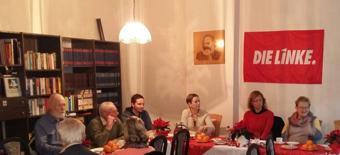 Am Dienstag, 08.12.2015, besuchte Caren Lay (MdB) ihren Patenwahlkreis Görlitz und traf sich mit den Genossinnen und Genossen aus Weißwasser und Umgebung zum gemütlichen Jahresausklang bei Kaffee und Stollen. Gemeinsam mit der Landtagsabgeordneten Kathrin Kagelmann und dem Ortsverband Weißwasser hatte sie ins LINKE Bürgerbüro in Weißwasser eingeladen. Schnell wurde an der weihnachtlich geschmückten Tafel politisch diskutiert.
