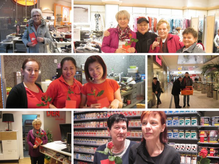 Frauentag ist aber auch ein Tag zum Feiern. Und ein Tag, um Anerkennung zu zollen. Im Namen der Lausitzer Bundestagsabgeordneten Caren Lay hat deshalb ihr Team am 08. März in Hoyerswerda das Lausitz-Center besucht und allen Verkäuferinnen eine Rose (natürlich fair gehandelt) überreicht. Der Einzelhandel ist immer noch ein überwiegend weiblich besetzter Arbeitsbereich, auch weil hier oft schlechte Löhne gezahlt werden und miese Arbeitsbedingungen herrschen. DIE LINKE kämpft deshalb für einen Mindestlohn von 12,50€, auch um Altersarmut zu verhindern – von der viele der Verkäuferinnen aus dem Handel unter den derzeitigen Verhältnissen leider betroffen sein werden. Wir kämpfen für faire Arbeitsbedingungen und zum Beispiel auch für mehr Personal im Gesundheits- und Pflegebereich. Denn mehr von (für) euch ist besser für Alle!
