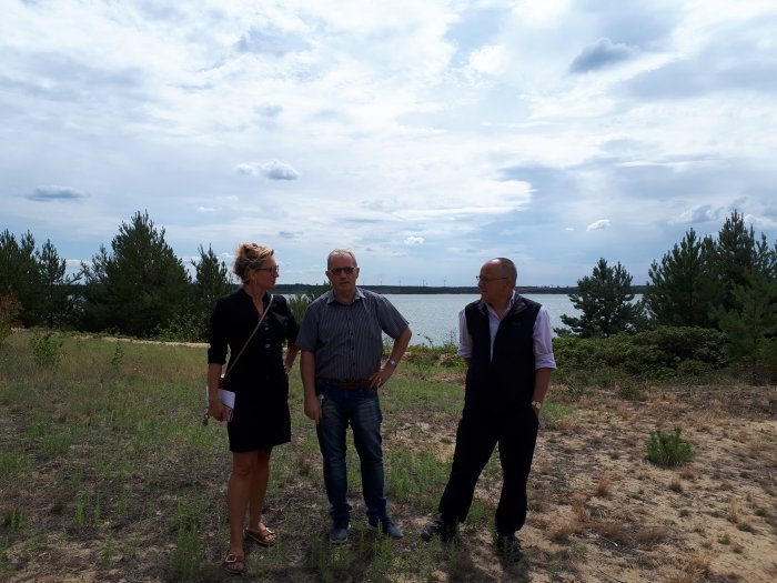 MdB Caren Lay mit dem Spreetaler Bürgermeister Manfred Heine und dem Vorsitzenden der Kreistagsfraktion DIE LINKE. Bautzen, Ralph Büchner am Spreetaler See.