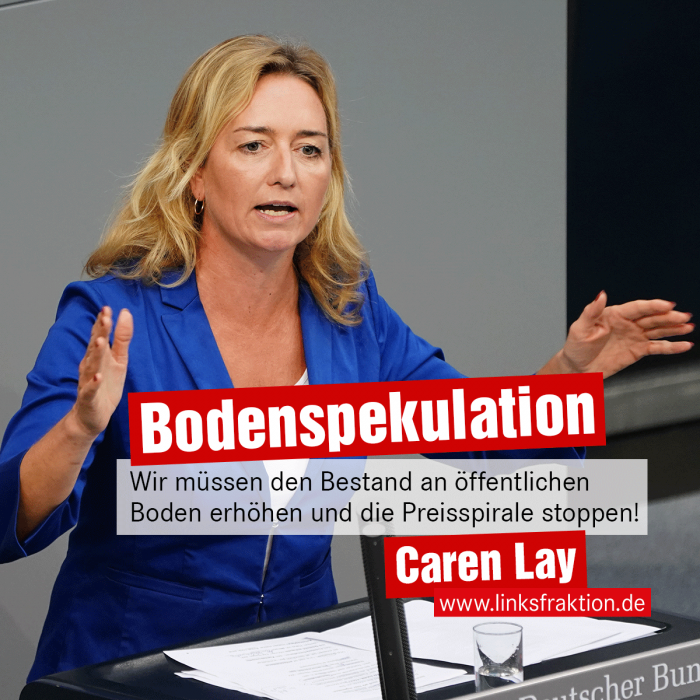 Wir als Fraktion DIE LINKE. im Bundestag treten für eine sozial gerechte Bodenpolitik ein. Im vergangenen Mai haben wir eine "Alternative Bodenkonferenz" durchgeführt und mit mehr als 100 Gästen darüber diskutiert, wie die Bodenpreisexplosion gestoppt und der Bestand an kommunalen Eigentum erhöht werden kann. Im Dezember 2019 haben wir einen umfassenden Antrag "Bauland in Gemeinschaftshand" in den Bundestag eingebracht und im Plenum debattiert. Mit unseren weitgehenden Forderungen für eine neue Bodenpolitik haben wir im Bundestag ein klares Alleinstellungsmerkmal.