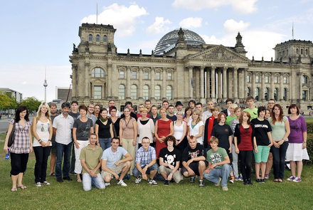 Zu einer etwas anderen Fahrt, nämlich zu einer 2- tägigen politischen Bildungsfahrt nach Berlin lud MdB Caren Lay, Ende Juli. Der Einladung folgten auch ein halbes Dutzend junger Menschen aus dem Kreis Meißen. Früh aufstehen hieß es sodann am Morgen des 26. Juli, der vollbesetzte Bus startete bereits 6.00 Uhr in Bautzen. In Berlin angekommen stand zunächst der Besuch des Karl-Liebknecht-Hauses, der Bundesgeschäftssteller der Partei Die Linke an. Dort bekamen wir eine Einführung in die spannende Geschichte des Hauses und der Partei sowie Informationen zu aktuellen Entwicklungen, auch wurden die einzelnen Arbeitsbereiche durch zwei Mitarbeiter_innen vorgestellt. Anschließend besuchten wir nicht ganz zufällig den Auftakt zum Aktionsprogramm gegen den schwarz-gelben Sozialkahlschlag, dabei hielt Caren Lay die Laudatio für die Überreichung des „1. Preises für die größte Sparschweinerei“ an Familienministerin Kristina Schröder, für die Kürzungspläne bei Familien mit geringen Einkommen. Wenn „die“ Linken aus Sachsen schon so eine „lange“ Reise auf sich nehmen, wollen sie sich natürlich auch gleich in der Bundespolitik mitmischen, soviel dazu. Im Anschluss daran besuchten die linke Reisegruppe das „Bundesministeriums für Ernährung, Landwirtschaft und Verbraucherschutz“, komplizierter Name aber auch da interessantes Aufgabenfeld. Den inhaltlichen Abschluss des Tages bildetet der Besuch des Dokumentationszentrums Topografie des Terrors, diese sehr eindrucksvolle Erinnerungsstätte setzt mit dem nationalsozialistischen Verfolgungs- und Terrorapparat von SS, Geheimer Staatspolizei bis hin zum Reichssicherheitshauptamt auseinander. Den entspannten Abschluss des Tages bildete ein geselliges Abendessen mit Caren Lay. Am Dienstag folgte die obligatorische Stadtrundfahrt durch Berlin, bevor der Bundesrat besucht wurde. Nach der Vorstellung des selbigen gab es noch ein Gespräch mit der Bundesgeschäftsführerin der Partei Die Linke, Caren Lay zu aktuellen politischen Themen. Bundespolitikerinnen mal hautnah zu erleben ist schon eine besondere Erfahrung. Ebenso wie der Besuch des Bundestages, der darauf folgte, ein Referent informierte über Funktion und Geschichte dieses Hauses auf den Besuchertribünen des Plenarsaals. Den Abschluss dieser 2-tägigen Bildungsfahrt bildete dann der Blick von der Dachterrasse des Bundestages auf einen herrlichen Sonnenuntergang über Berlin. Die Fahrt zurück bot Zeit das erlebte noch einmal Revue passieren zu lassen, es zeigte sich der hohe Stellenwert der auf die politische Bildung gelegt wird, das Engagement der verschiedenen Referentinnen und Referenten war außerordentlich beachtlich. Bei allem Engagement bleibt aber der Beigeschmack, dass sich zwar alle Mühe gegeben wird, die repräsentativen Gebäude hell und offen, durch die Verwendung von Glas auch transparent zu gestalten, in Anbetracht dessen das auch Politik immer möglichst transparent und nachvollziehbar sein soll. Aber die Entscheidungen die getroffen werden, sind leider weit aus weniger transparent, als sie es vielleicht sein könnten. So bleibt der Unterschied zwischen Realität und dem Bild, dass der Öffentlichkeit vermittelt werden soll. Eine kritische Auseinandersetzung mit diesem Widerspruch sowie mit Politik und ihren gesellschaftlichen Auswirkungen ist und bleibt eine der elementaren Aufgaben der politischen Linken. Nichtsdestotrotz bleibt nur jedem zu Empfehlen, wenn die Möglichkeit besteht an so einer Fahrt teilzunehmen. Auch wenn es teils anstrengend war, blieb doch gerade am Abend Zeit für ein geselliges Beisammen sein und eins war es allemal informativ und zum nachdenken anregend. Ein Dank an dieser Stelle auch noch einmal an Caren Lay und ihr Wahlkreismitarbeiter in Hoyerswerda René Strowick, der den reibungslosen Ablauf des ganzen gewährleistete und immer für Fragen bereit stand.