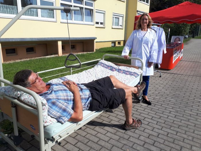 In der vergangenen Woche sind wir mit Krankenhausbett und Infostand vor den Krankenhäusern in Kamenz, Pulsnitz, Hoyerswerda, Bautzen und Bischofswerda mit Pflegekräften und Patient*innen ins Gespräch gekommen und haben über unsere Konzepte in der Gesundheitspolitik informiert: