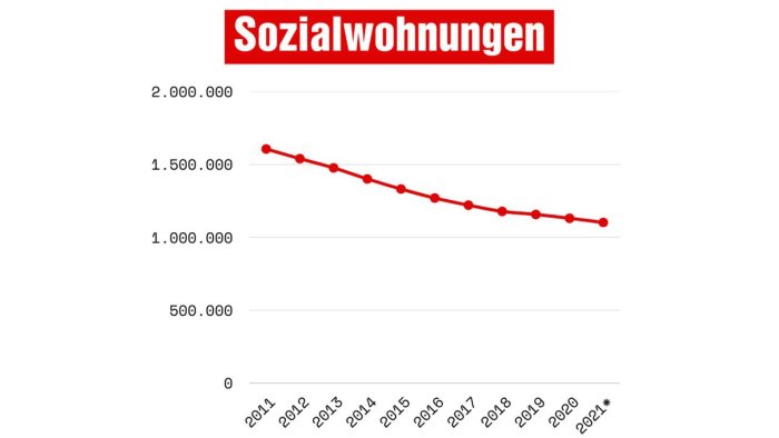 Auch die Gesamtzahl der Sozialwohnungen ist rückläufig. Wenn man positiv davon ausgeht, dass Baden-Württemberg seinen Bestand von 55.000 aus 2020 hält, dann ergibt sich ein Bestand von 1,105 Millionen Sozialwohnungen. Ende 2020 waren es noch 1,128 Millionen. Das wäre unterm Strich ein Minus von 23.000 Sozialwohnungen in einem Jahr. Dieser jährliche Rückgang kommt dadurch zustande, dass Sozialwohnungen „aus der Bindung fallen“, also ihren Status als Sozialwohnungen verlierenden und wieder frei am Markt vermietet werden können.