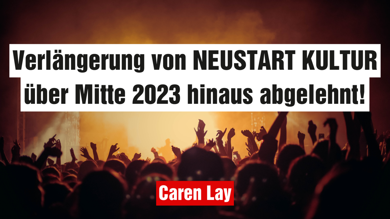 „Die Bundesregierung hat einen Antrag der Fraktion DIE LINKE abgelehnt, das Programm NEUSTART KULTUR bis Ende 2023 zu verlängern. Damit wird die Förderung von Veranstaltungen im kommenden Corona-Winter und vor allem von Sommerfestivals ausgeschlossen. Zahlreiche Kulturveranstaltungen sind damit gefährdet, die Pandemie und deren Nachwehen zu überstehen“ so die club- und festivalpolitische Sprecherin der Fraktion DIE LINKE. im Bundestag Caren Lay anlässlich der Entscheidung des Haushaltsausschusses des Bundestags. Lay weiter: