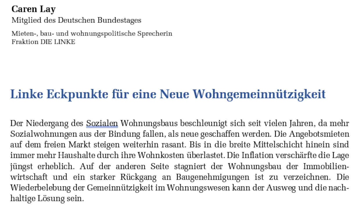 Linke Eckpunkte für eine Neue Wohngemeinnützigkeit