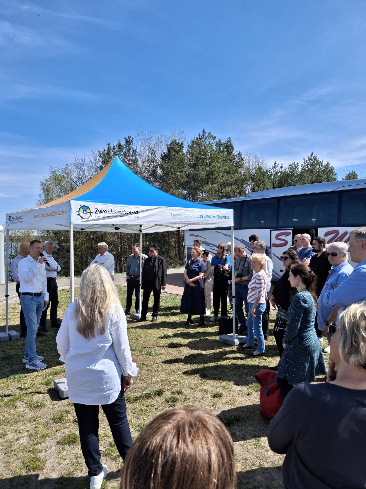 Der zweite Teil der Regionalkonferenz bestand aus einer Tour an drei der Seen im Seenland zu einer Vor-Ort-Besichtigung: dem Dreiweiberner See und dem Knappensee in der Gemeinde Lohsa und dem Scheibesee mit der größten Anrainer-Kommune Hoyerswerda.