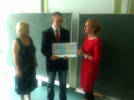 Einen Spendenscheck in Höhe von 300€ überreichte die Bundestagsabgeordnete Caren Lay am 23. Juni 2011 an die 10. Klasse des Hoyerswerdaer christlichen Gymnasiums „Johaneum“.