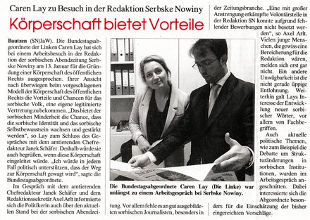 Artikle in der Serbske Nowiny vom 14.01.2011
