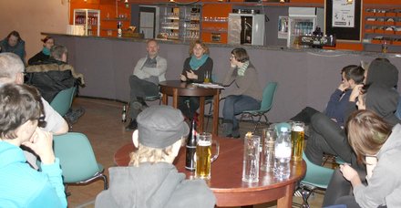 Anschließend konnte über den Film, aber auch über die Initiativen in Hoyerswerda diskutiert werden. Lars Maibaum: „Die Wechselwirkung zwischen den Menschen vor Ort ist wie in der Musik sehr wichtig – sie alle sollten bereit sein zu lernen und nicht nur missionieren zu wollen. Und wenn die deutsche Bürokratie Sie zum Verzweifeln bringt, sagen Sie sich: „egal, wir spielen dennoch zusammen Fußball!“ Das Filmteam hat viele Städte in Deutschland bereist und viele Bürgerinitiativen getroffen und stieß dabei u.a. auf Unwegsamkeiten der Art, dass nur versicherte Menschen in Sportclubs gemeinsam sportlich aktiv werden können.