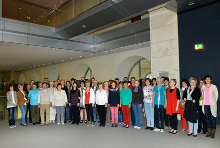 Gäste aus Hoyerswerda und Bautzen, aber auch aus dem Nachbarkreis Görlitz, der Gemeinde Seifhennersdorf, waren zu Gast im Bundestag. Das Bundesministerium für Arbeit und Soziales (BMAS) stellte sich den Gästen vor und eine rege Debatte über die sog. Mütterrente entbrannte. Die vielen Mitarbeiterinnen und Mitarbeiter der AWO Hoyerswerda und die anderen Gäste freuten sich auch über einen Besuch bei der Bundeszentrale für politische Bildung. Bei einem Rundgang am Holocaust-Mahnmal, der East-Side-Gallery und während der Stadtrundfahrt konnten die Teilnehmenden Berlin erkunden. Der Besuch des Bundestages, das Gespräch mit Caren Lay und die Besichtigung der Kuppel rundeten den Besuch ab.